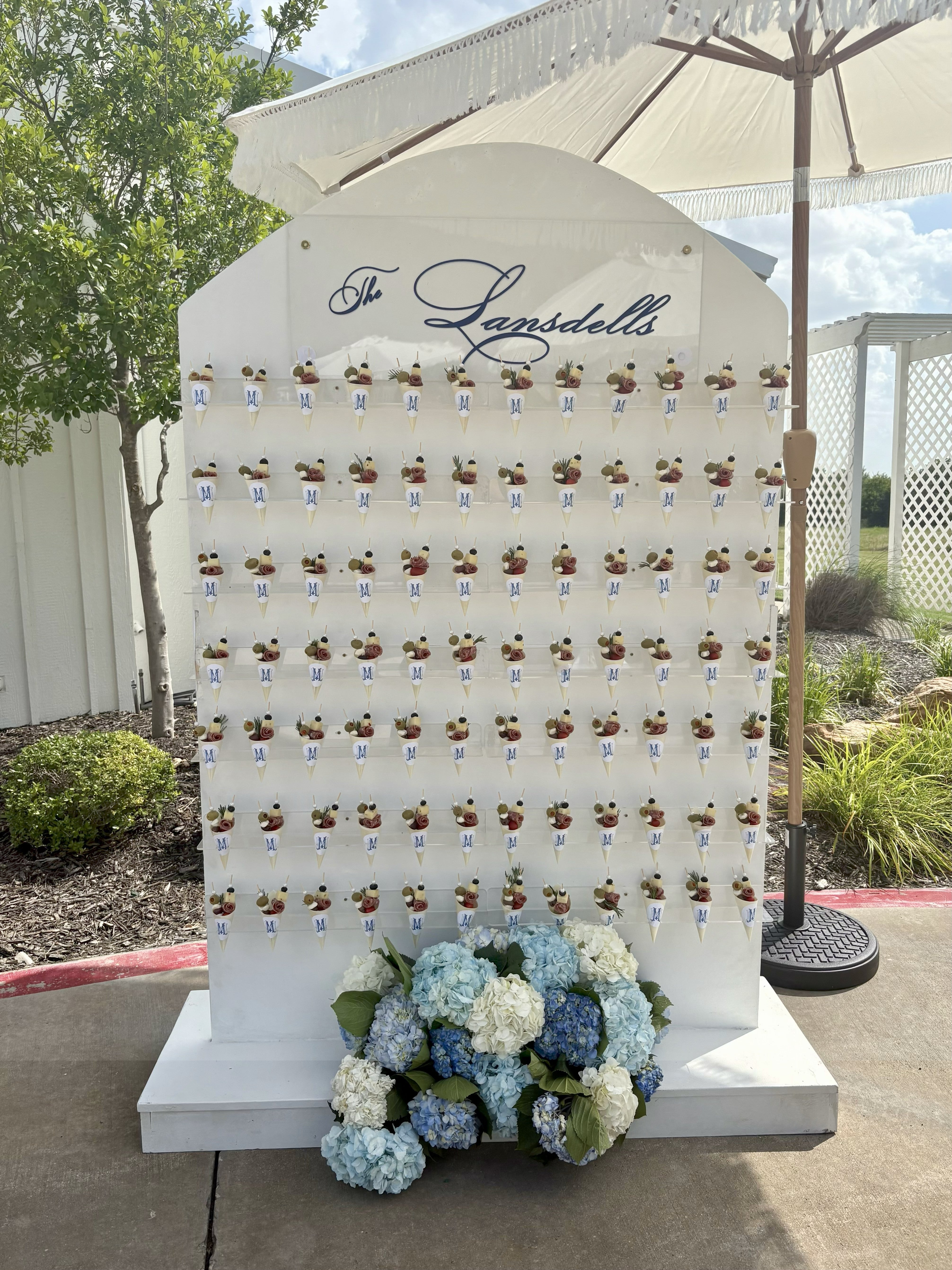For large gatherings and special events, we can provide this charcutie champagne wall that includes: